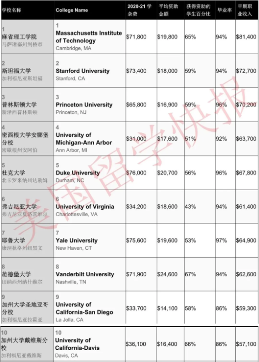 此次《Money》對(duì)于學(xué)校的評(píng)估十分全面,包括教育成本、教育水平、師資力量、就業(yè)水平等大家非常關(guān)心的要點(diǎn)。因此,跟其他性?xún)r(jià)比排名有所不同的是,《Money》更關(guān)注學(xué)校本身給學(xué)生帶來(lái)的幫助。也就是說(shuō),該排名更看重學(xué)校的價(jià)值。詳見(jiàn):《Money》2020年美國(guó)大學(xué)性?xún)r(jià)比排名出爐,MIT奪冠,UCI掉出前10篩選和評(píng)估指標(biāo)有哪些?http://m.dgtaihe.cn/liuxuezixun/5938.html