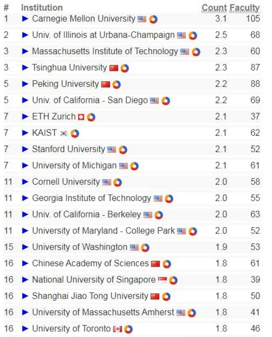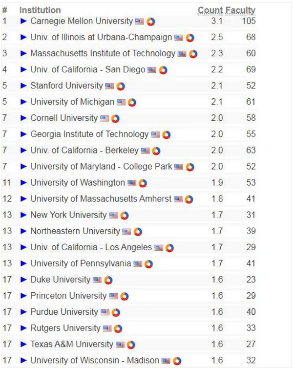該排名以全球高校和研究機(jī)構(gòu)在計算機(jī)領(lǐng)域的頂級學(xué)術(shù)會議上發(fā)表論文數(shù)量作為主要依據(jù),強(qiáng)調(diào)學(xué)術(shù)影響力和國際活躍度,相對于傳統(tǒng)的排名方法更能體現(xiàn)出院校在CS領(lǐng)域的真正實(shí)力以及師資力量,因此非常有參考價值。