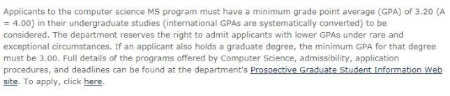 3. 申請人的最低GPA必須高于3.2(4分制),如果已經(jīng)持有研究生學(xué)位,則最低GPA為3.00。同時,學(xué)校也表示極個別情況下學(xué)院也會錄取GPA較低的申請者。