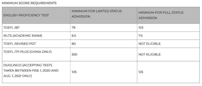 4. 學(xué)校嚴(yán)格要求國際生的英語水平,低于最低分的不允許入學(xué)(沒有“有條件錄取”)。學(xué)校只接收托福成績,最低分為85分。CSE表示“不得使用其他英語考試來代替TOEFL”,且接受家考但不接受TOEFL ITP成績。