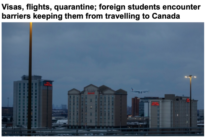預(yù)備9月赴加拿大留學(xué)的國(guó)際學(xué)生或?qū)⒚媾R不能按時(shí)申領(lǐng)簽證、疫苗接種不足、額外入境隔離檢疫費(fèi)用及航班減少或完全取消及等不利因素,令留學(xué)生的赴加求學(xué)之路漫長(zhǎng)而艱辛。