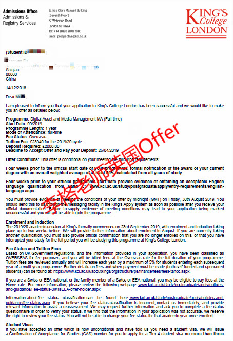 在李格老師的指導下該同學成功錄取倫敦國王學院
