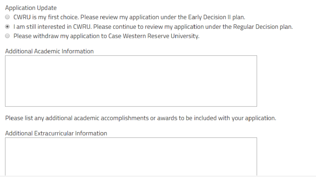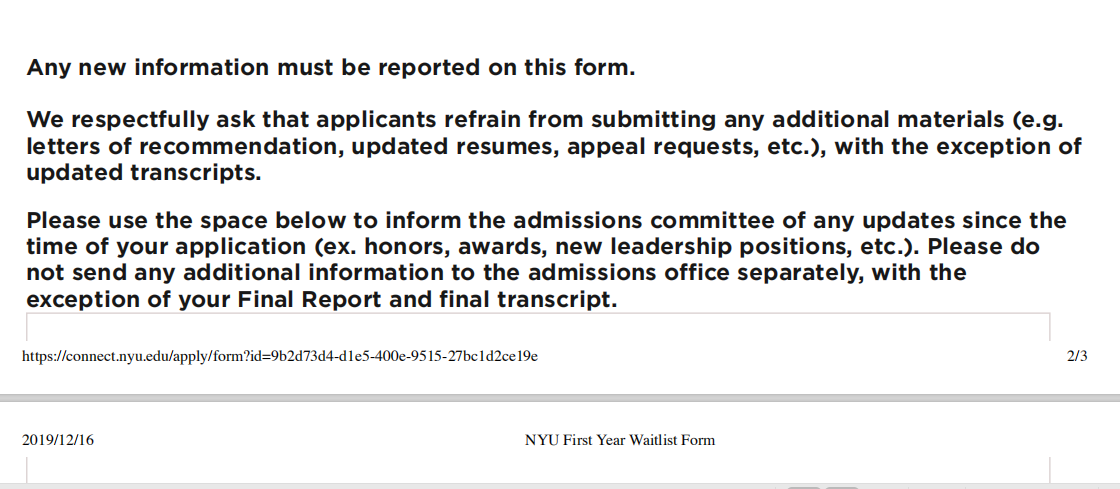 有些學校在接受waitlist form的界面上提供了補充信息的地方,并給出了具體的內容指示,比如NYU,凱斯西儲大學。同學們只需在規定的回復時間之前把信息補充好提交即可。